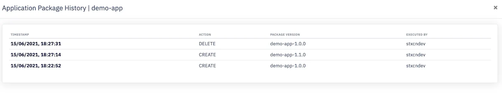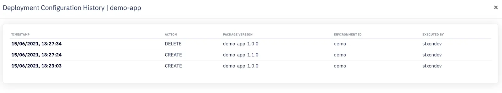 The Packages and Deployment Configurations history can be accessed directly from their panels on the Application Detail page.