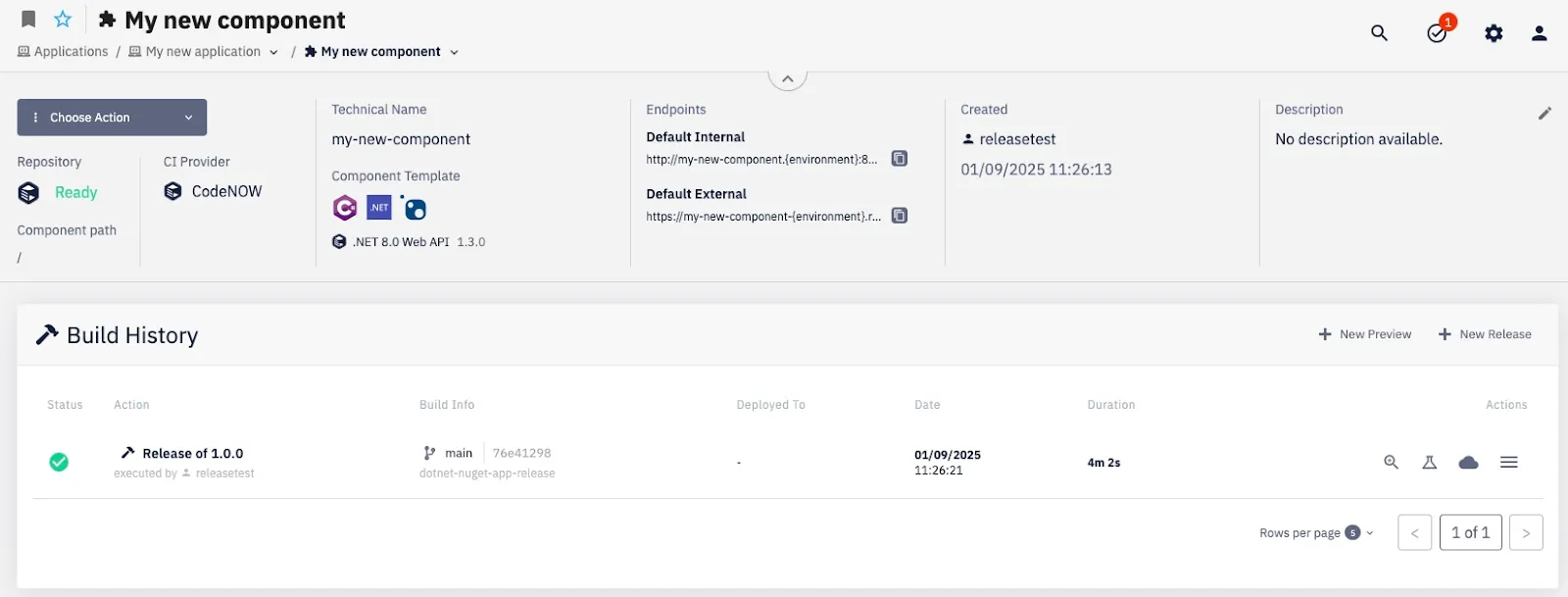 The application component dashboard now displays detailed duration information for CI pipelines, providing developers with immediate insights into build performance and optimization opportunities.